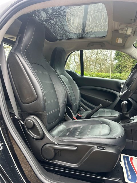 This car benefits from; 3 x Former Owner From New - 2 x Keys - Touch Screen Media Pan Roof Main dealer history + new service USB, AUX & 12V Port - ULEZ Compliant - Bluetooth Handsfree - Alloy Wheels - Electric Windows and Wingmirrors - Automatic Lights - LED Lights - Isofix - Air Conditioning. Call us on 01277 500505 to arrange your test drive today. Non Smoker & Pet Free - Nationwide Delivery -Low Rate Finance Options are available - Part Exchange welcome - Viewings at our indoor showroom - Open 7 days a week Discover this 2017 Smart Fortwo Prime, a compact car designed for efficient urban driving. This particular model boasts a 1.0 litre petrol engine and meets Euro 6 emission standards, contributing to its impressive fuel economy of 69 mpg. As a Prime variant, it comes equipped with a Premium Equipment Line, including Bluetooth connectivity and rear parking sensors to aid manoeuvring. Inside, you and your front passenger will appreciate the comfort of heated seats, while the fixed panoramic roof with sun protection offers an open and airy cabin feel. This Smart Fortwo Prime also features a Cool and Audio Package, complete with automatic climate control and Bluetooth, ensuring a pleasant environment no matter the weather. The low CO2 emissions further highlight its eco conscious design, making it a sensible choice for those mindful of their environmental impact. These features collectively demonstrate how this Smart Fortwo offers a refined and practical driving experience, setting it apart from other vehicles in its class.- Finance